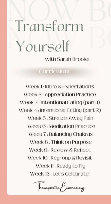 Over 11 weeks, I'll walk with you every step of the way, offering personalized guidance, support, and holistic strategies to help you achieve lasting transformation - in mind, body and spirit. Commit to yourself. Create lasting change. Step into your full potential!